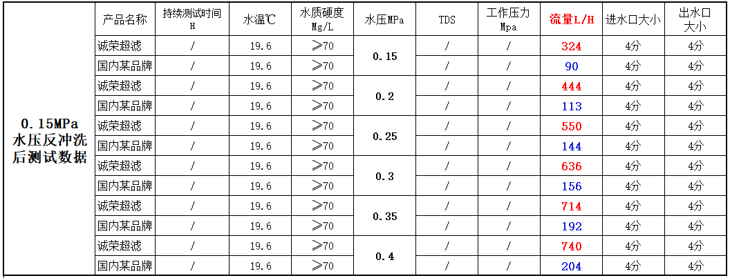 Using 0.15MPa and 0.3MPa backwash pressures followed by six operating pressures (0.15-0.4MPa), data tells all: